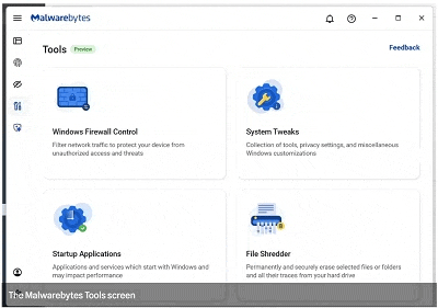 • Open the Malwarebytes app and select the “Tools” icon from the lefthand menu (the screwdriver and wrench icon)