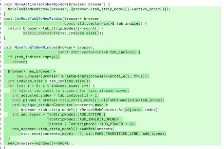 "Adds support for moving multiple tabs to a new window from the tab context menu. It also correctly handles pinned tabs, preserving their pinned state in the new window. Since multiple tabs now can be moved, the string was changed to pluralize “tab” to “tabs” when necessary," the Chromium patch reads.