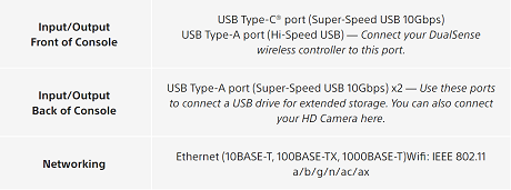 What input/output ports and connectivity features do PS5 support?