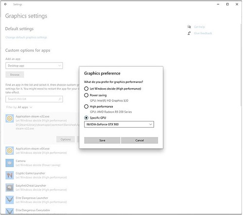 On devices with two GPUs, Windows 10 will use integrated one as a power-saving GPU and the discrete graphics card as a high-performance GPU. This setting will be configured automatically based on your device.
