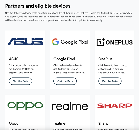 Will my phone work with Android 12 beta?Google is releasing the first Android 12 public beta for its line of Pixel phones, as well as select models from OnePlus, ZTE, TCL, Oppo, RealMe, Sharp, Tecno, Vivi, Xiaomi and Asus. Google's developer website