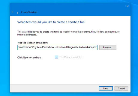 The aforementioned line lets you create a desktop shortcut for Network Adapter, and