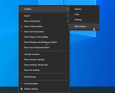 Toolbars in Windows 10 helps you add different things such as an address bar, links, folders, etc. If you are a frequent user of Windows 10 Troubleshooters, you can add a shortcut of them in the Taskbar with the help of Toolbars functionality. In other words, you can create a desktop shortcut of your desired Troubleshooter/s and add it/them in the Taskbar, followed by moving it/them to a folder.