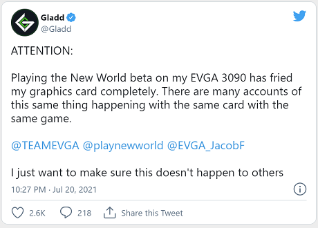 Original story: The closed beta for Amazon's New World MMO just went live yesterday, and today there are multiple reports that it's somehow killing GeForce RTX 3090 graphics cards.