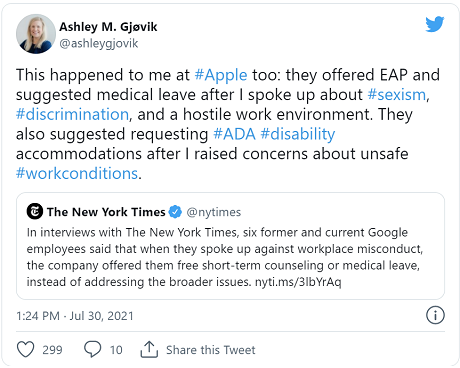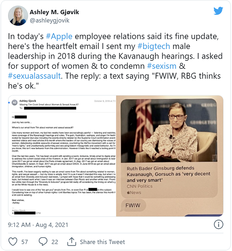 This is the second time Apple has investigated Gjøvik’s claims about sex discrimination at the company. The employee relations team closed an earlier investigation, allegedly finding that nothing was wrong, prompting Gjøvik to tweet screenshots with what she says is just a small portion of what she experienced: