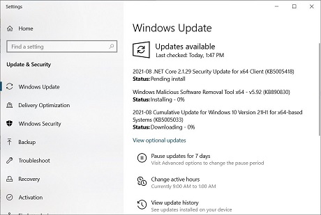 August 10, 2021KB5005033 (OS Builds 19041.1165, 19042.1165, and 19043.1165)If you own multiple PCs or if you would like to patch the PCs manually, you can learn more about how to do this