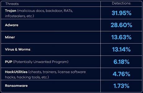"Throughout 2021, we have seen countless threats that came specifically from supposed games, including miners, RATs, and infostealers, all delivered in a bundle with the (cracked) game," comments the ReasonLabs report.