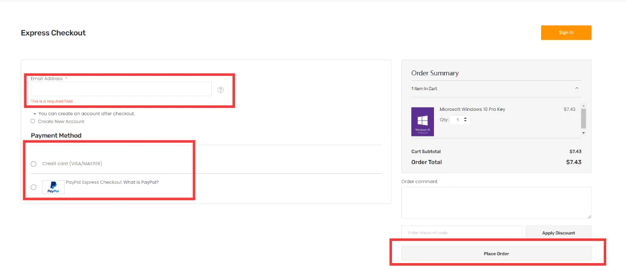 3. You need to fill in your email address, because we will send you the product license activation code by email, and then select the payment method: Credit Card (VISA/MASTER) or PAYPAL. After confirming that the product and email address are correct, click “Place Order” “.