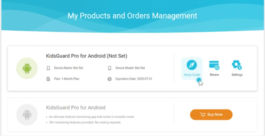 Step 2. Download the App on the Target DeviceOn the “My Products and Orders Management” page, click on “Setup Guide” to read the download instructions. Next, access your target device to download and install the software.