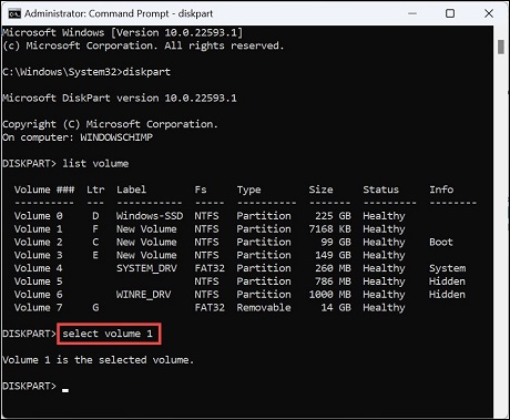 3. After selecting the volume, type the