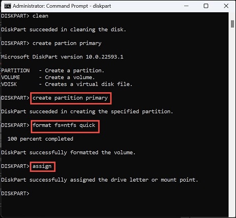 Here are the steps to format a hard disk partition using DiskPart: