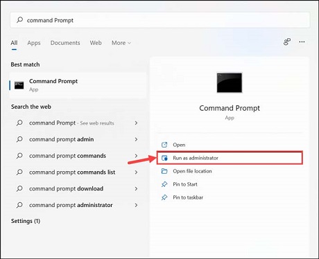 Command Prompt in the Windows search bar and launch it with admin rights.