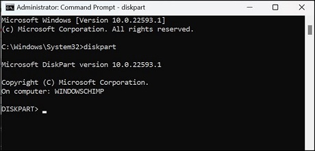 diskpart and hit enter. The DISKPART tool would be open and ready to use.