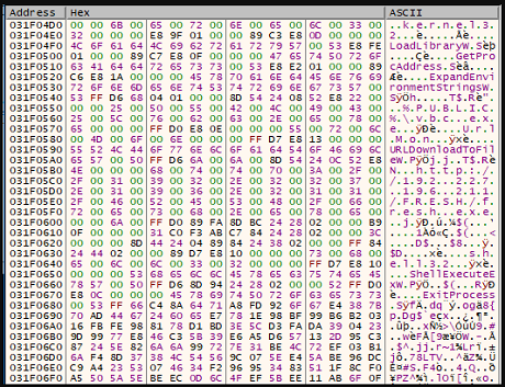 Decrypted shellcode presenting the payload (HP)
