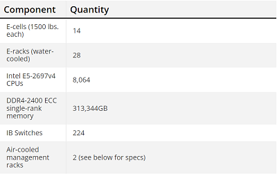 The Cheyenne supercomputer is a water-controlled installation made up of SGI ICE XA modules with 28 racks holding 8,064 Intel E5-2697v4 CPUs. That totals 145,152 cores, for those keeping count. The main system is spread across 4,032 dual-socket nodes. Here are the specs of the primary components: