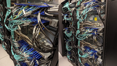 Beyond the above hardware, the supercomputer also includes two air-cooled management racks. These consist of 26 1U servers each, 20 of which have 128GB of memory and six with 256GB of memory. That's an additional 8TB of DRAM, if you're wondering. The management racks also include 10 Extreme Switches, and two Extreme Switch power units, and each rack weighs 2,500 pounds.