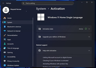 Activation state.’ In my case and in most cases, it’s activated using a digital license linked to a Microsoft account.”