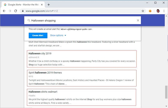 Shopping Google AlertsIn the example above, all of the highlighted results are scam redirects.