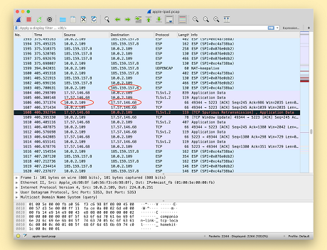 Exposed connections to Apple servers (ProtonVPN) - click to enlarge