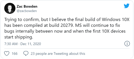 Today WindowsCentral’s Zac Bowden tweeted that the final build of the OS, build 20279, has been compiled.
