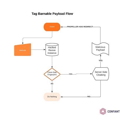 “Tag Barnakle, on the other hand, is able to bypass this initial hurdle completely by going straight for the jugular—mass compromise of ad serving infrastructure,” Confiant researcher Eliya Stein wrote in a blog post published Monday. “Likely, they’re also able to boast an ROI [return on investment] that would eclipse their rivals as they don’t need to spend a dime to run ad campaigns.”