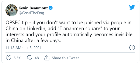 Now another element of this self-censorship became apparent when cybersecurity researcher Kevin Beaumont revealed Microsoft’s LinkedIn hid your profile from Chinese searchers if you mentioned Tiananmen Square in it.