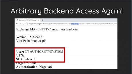 Black Hat talk about recent Microsoft Exchange vulnerabilities he discovered when targeting the Microsoft Exchange Client Access Service (CAS) attack surface.