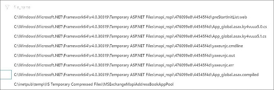 Files created by the scan on Microsoft Exchange honeypot Source: TwitterNow that threat actors are actively scanning for vulnerable Microsoft Exchange servers, Beaumont advises administrators to use Azure Sentinel to check IIS logs for the "/autodiscover/autodiscover.json" or "/mapi/nspi/" strings.