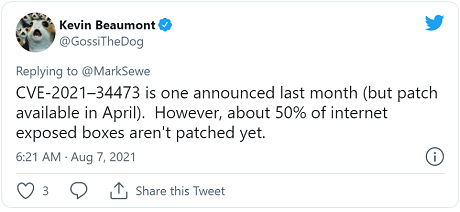 However, Tsai states that there are currently 400,000 Microsoft Exchange servers exposed on the Internet, so there are bound to be successful attacks.