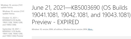 Windows Updates are evaluated for expiration on a regular basis and “expired” status would appear on Microsoft’s website, as shown in the above screenshot.