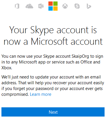 Here are the steps to merge Microsoft accounts using skype: