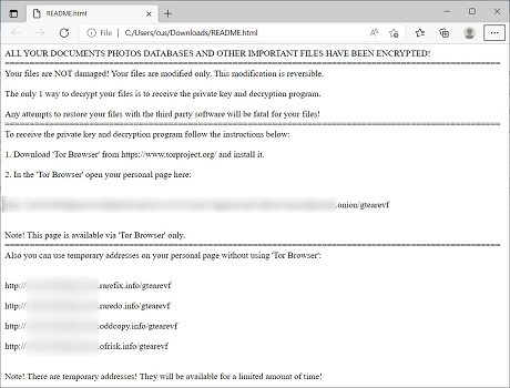 README.html in each folder that contains instructions on how to access the Magniber Tor payment site to pay a ransom.