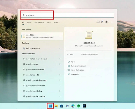 1. Click the Start menu and type gpedit.msc.