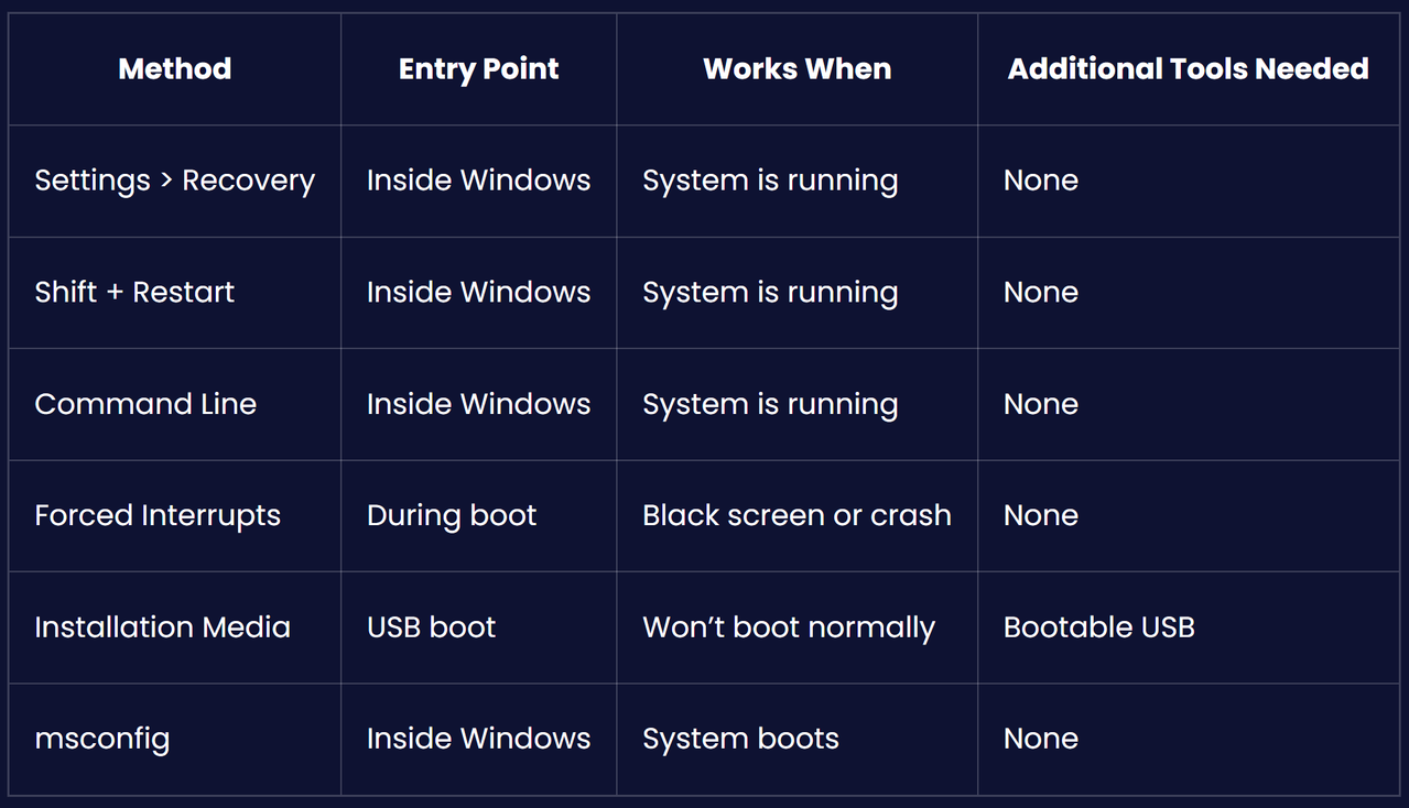 How do I start Windows 11 in Safe Mode?Use any method like Shift + Restart, msconfig, or recovery options to enter Safe Mode.