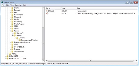 HKCUSOFTWAREPoliciesGoogleChromeExtensionInstallForcelist Registry