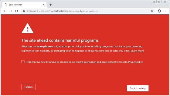 browser interstitial instead. Chrome uses interstitial pages to display warnings to users before they actually visit the requested site.