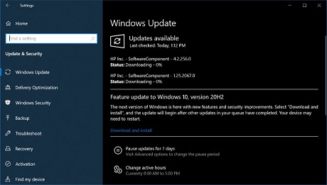 When the PC reboots, navigate to Update & Security > Windows Update and click the Check for Updates button. You will see that the “feature update to Windows 10 version 20H2” is offered. Install any pending updates first. Then, click “Download and install.”