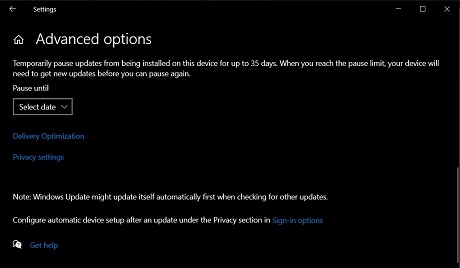 pause updates” section and select a date to pause updates until.