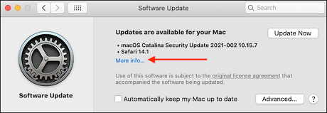 If you only want to install an update to Safari, click “More Info” under the list of available updates to see a detailed list of all updates.