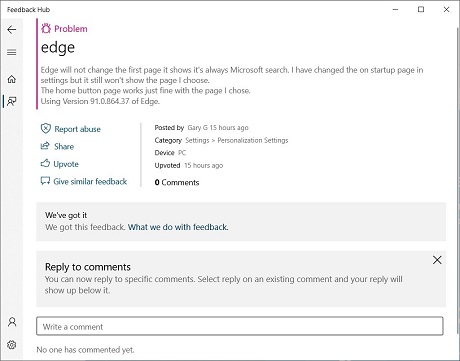 Microsoft Edge users have also reported on Wilder Security Forums, Microsoft Edge Insider forums, and the Feedback Hub, that the browser Edge is no longer honoring their configured startup page and is opening the New Tab page instead.