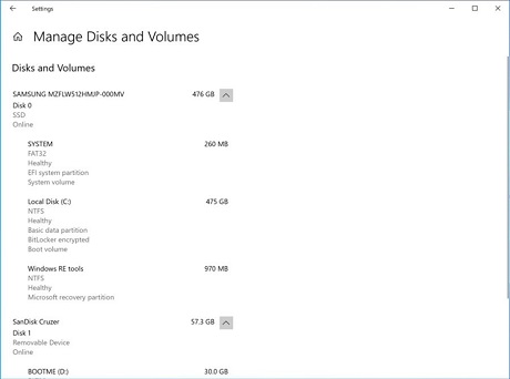 To access this new tool, you need to go to Settings > System > Storage and click Manage Disks and Volumes.