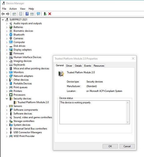 Use Device Manager to check the TPM versionYou can also run the TPM Management snap-in (Tpm.msc). That tool will tell you the name of the TPM manufacturer as well as the version information. Be sure to close the snap-in without making any changes.