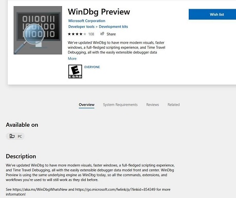 Download and Install WinDbg PreviewLike most UWP programs, WinDbg Preview is available from the Windows Store. Thus, you can search for “WinDbg Preview” inside the store, or simply follow