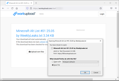 The lure used by the threat actors are 'alt list' text files that supposedly contain stolen Minecraft account credentials, but in reality, is Chaos ransomware executable.