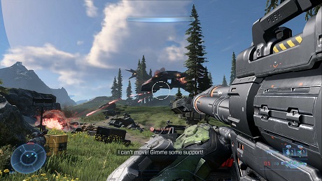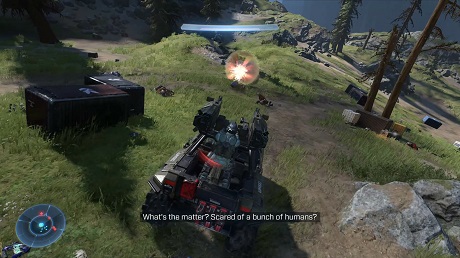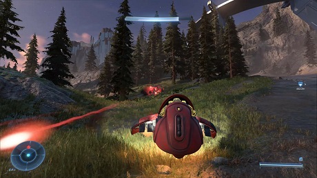 The skyboxes are phenomenal, the iconic ring stretching off into the heavens, with that sense of a paradise under siege as prevalent here as it ever was in a Halo game. The draw-distance is impressive, and you’ll track enemy patrols through pine forests and over craggy mountains, on-foot, or in one of the various vehicles you can find. Once you get the hang of them of course. Old hats may be right at home with the Warthog’s now-legendary physics model, while newcomers might wonder what on Earth is going on when a random rock sends them barrel-rolling into the air.