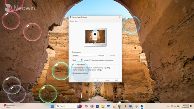 That doesn't mean that they don't exist, though. Windows still contains a handful of screen savers that behave in exactly the same way as before. You can configure a max idle time, and as soon as that timer runs out, screen saver animations will kick in. The animations on offer currently include 3D Text, Bubbles, Mystify, Photos, and Ribbons. No Pipes, unfortunately.