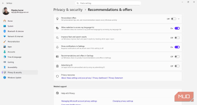 Over time, though, I started noticing how often those prompts appeared and got curious about how much of it was built in. I opened the settings just to check, expecting most of it to be hardwired into the system. Instead, I found that most of the ads and suggestions were controlled by simple toggles. I disabled them one by one and was surprised it took only a handful of changes to clear out almost all of it.